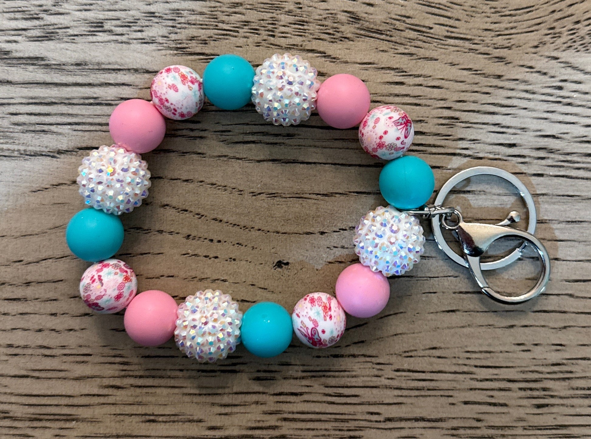 This silicone beaded wristlet keychain adds a cute accessory to your wrist while also serving a huge purpose: holding all of your keys, keychains, keychain wallets, etc.