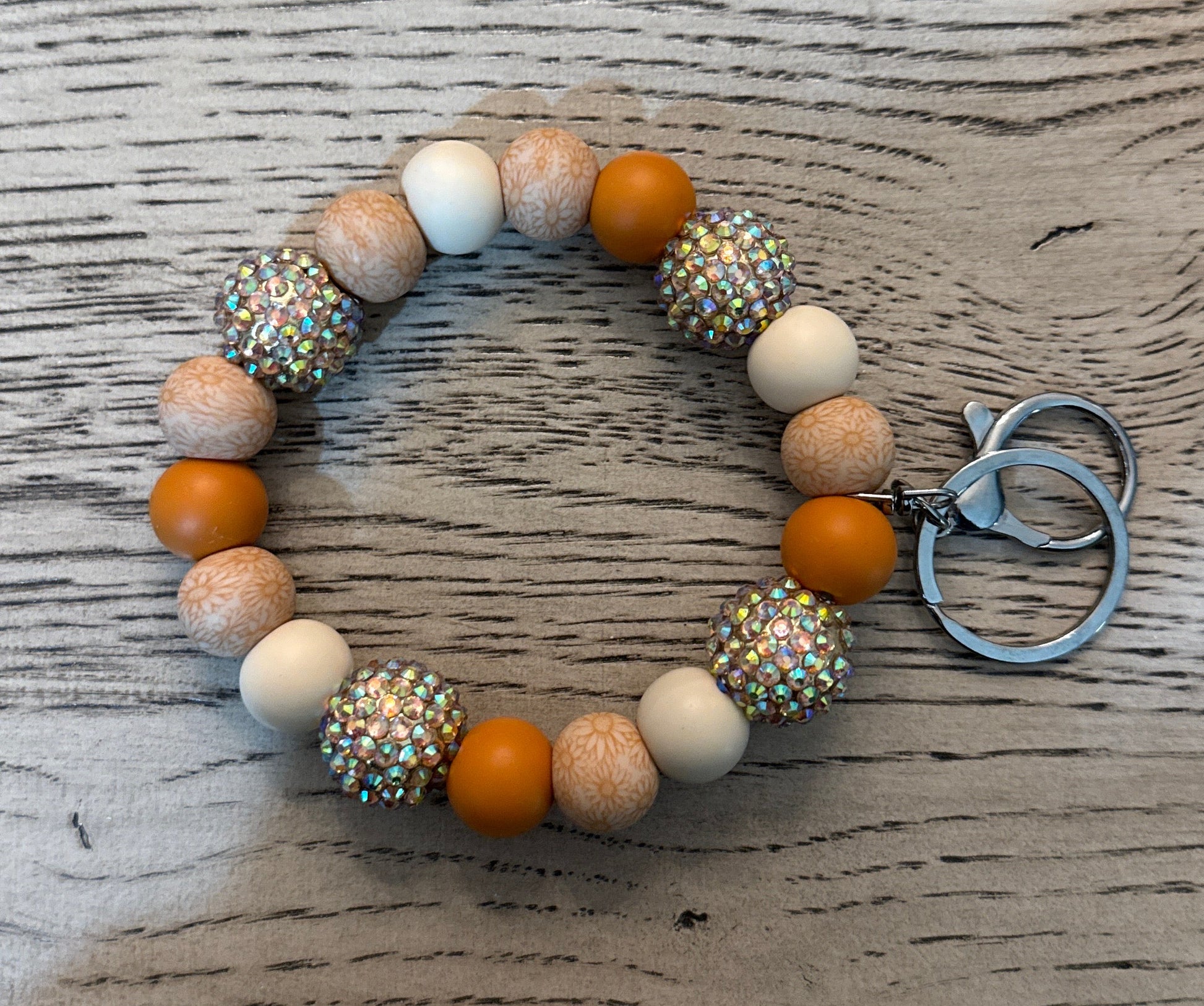 This silicone beaded wristlet keychain adds a cute accessory to your wrist while also serving a huge purpose: holding all of your keys, keychains, keychain wallets, etc.
